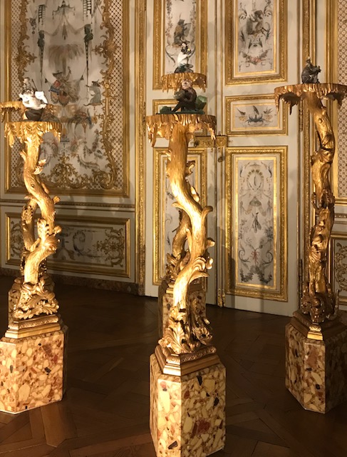 在尚蒂依城堡中有一個猴子廳,牆壁裝飾以猴子為題材,正如上文所說,18世紀時法國流行中國裝飾,這個猴子庁就是一個例子。展在猴子廳中放了一系列以猴子為題材的瓷器,而陳列這些瓷器的金色树架更是雍容華貴、豪華得體。