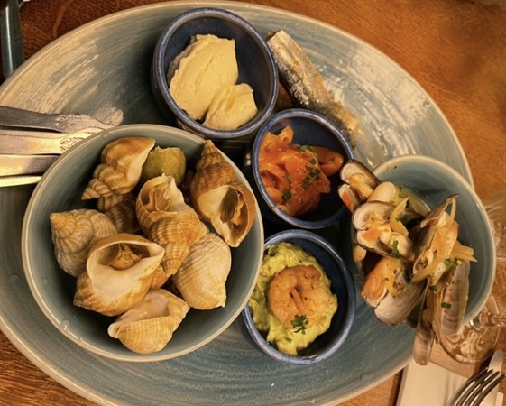 The tapas starter is a good choice if you want to try a bit of everything. The sardines are delicious or you can have oysters.