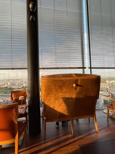 Situated on the 25th floor of the Too Hotel building, 3 sides of the restaurant are in full length glass. As the building is at the south east limit of Paris, this offers an unobstructed 270 degree panoramic view of Paris, from Bercy area close by to La Defense in the far. The star is of course the Eiffel Tower. It is just magnificent. If you want to stay in the hotel, ask for the room 2308 for the best view.