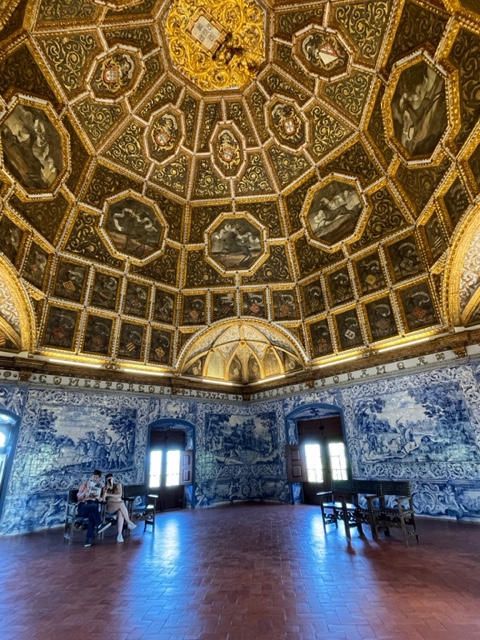 舊皇朝的皇宮常有象徵它的主人的徽號,天鵝廳是Joao I 皇帝(1385- 1433)和Philippa of Lancaster 皇后用的,皇后來自英國,是英皇Henry IV的妹妹,Henry IV 的䘗號是天鵝,把天鵝放在此廳是想念哥哥還是增長威望。