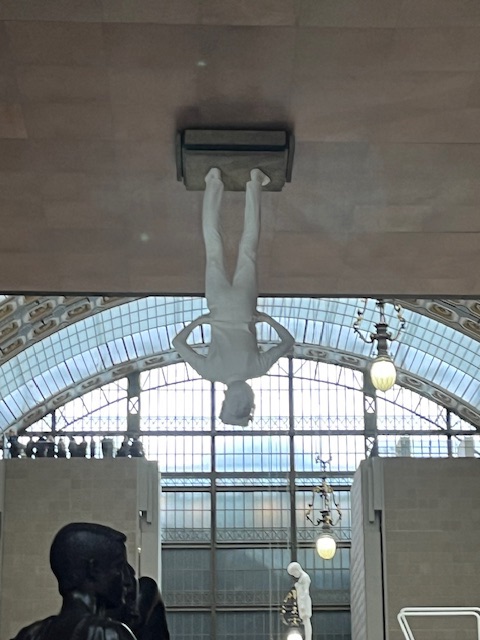 這是藝術家 Elmgreen & Dragset 的臨時展覽 Addition 中的一件作品,專為奧賽博物館設計。在展廳中央,還有一位少年雕像站在跳水台上,呈現出即將一躍而下的動態。