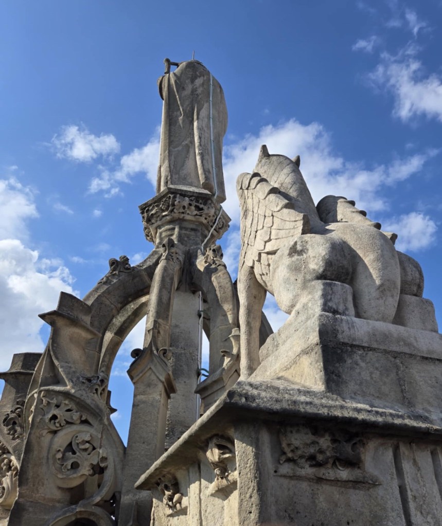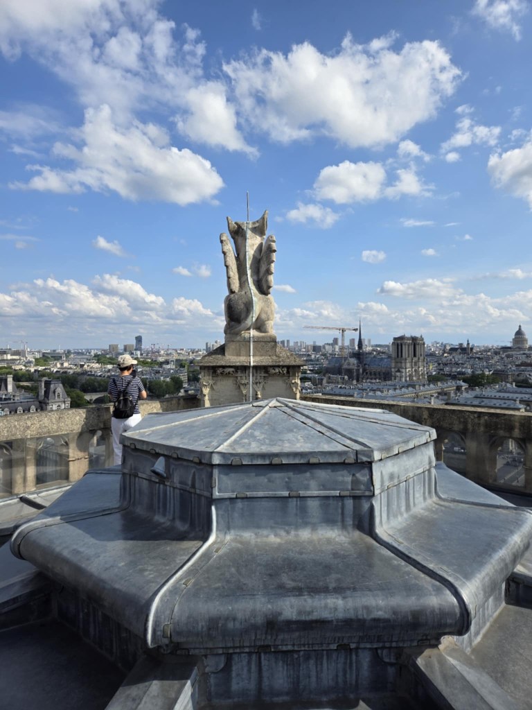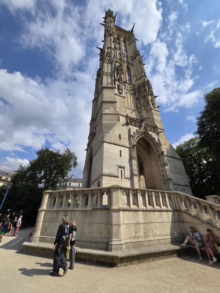 其實,這座高塔原本是 Saint-Jacques-de-la-Boucherie 大教堂的鐘樓,大教堂曾是中世紀朝聖之路上的重要一站。不幸的是,大教堂在法國大革命時期被毀,僅存下這座鐘樓。後來經過修復,這裡被命名為「聖雅克塔」(Tour Saint-Jacques),成為巴黎少數仍可攀登的古蹟塔樓之一, 也是 Saint Jacques de Compostelle 朝聖之路的起點。
