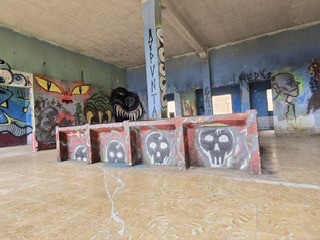 如今的 Abades 已成為大型的開放式畫布,到處都是 graffiti。雖然大部分塗鴉風格隨意,仍有少量作品非常值得拍攝。此外,廢墟裡甚至看到曾有人在此慶祝生日的痕跡,例如牆上出現「生日快樂」等字樣。