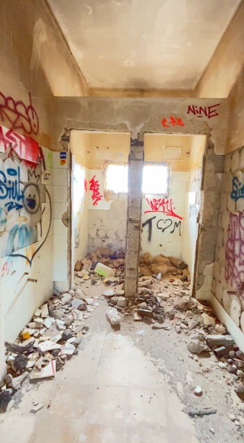 外牆普遍仍保持完整,但室內多半凌亂破敗,加上噴畫與剝落痕跡,形成強烈的廢墟感。對喜歡觀察細節的人來說,這裡滿是線索與「曾經可能是什麼」的想像空間。