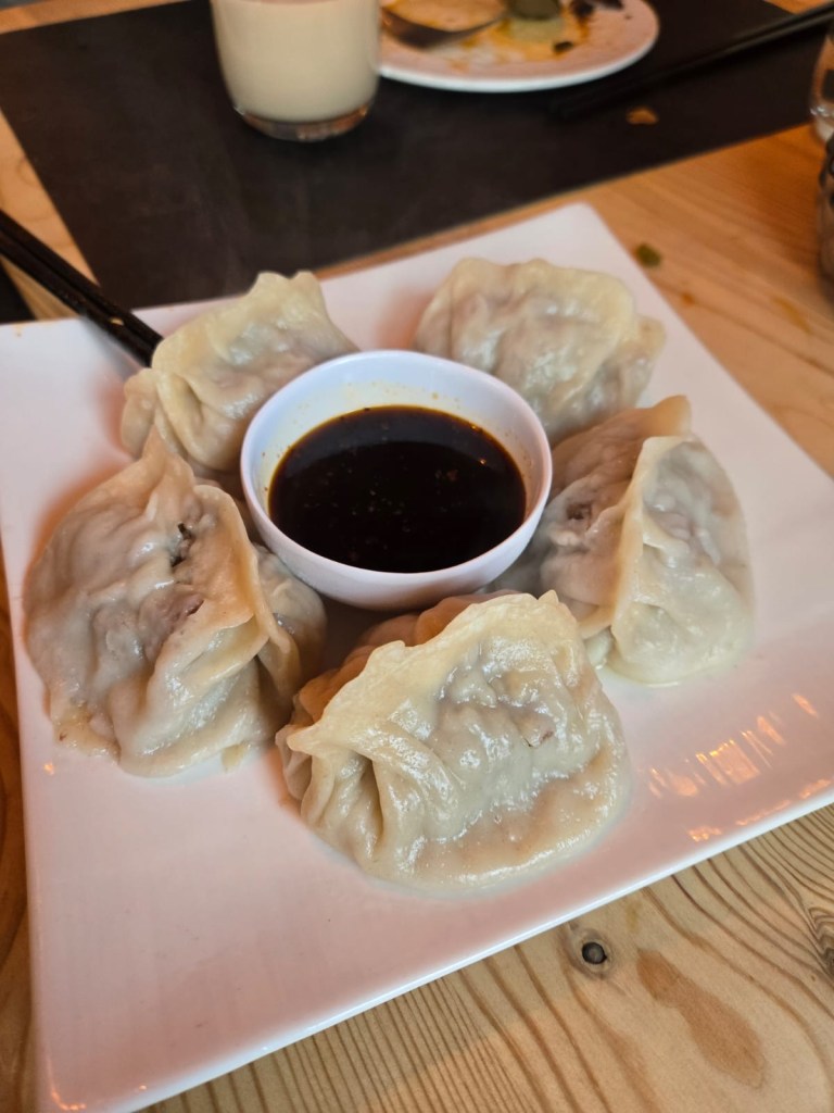 These dumplings are similar to Chinese dumplings but much larger.