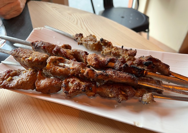 The lamb skewers were tender and tasty. We ordered a second round.